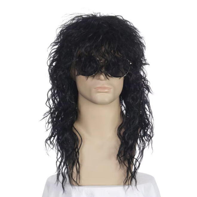 3 Pcs 80s Style Mens Fashionable Black Curly Wig